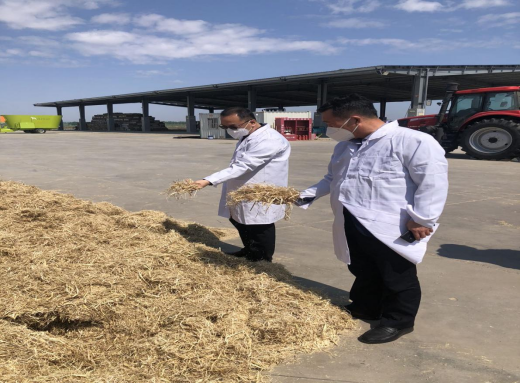马明宽一行先后深入母牛繁育、育肥牛、稻草仓库等区域进行调研指导,详细了解入场人员管控措施、场区消毒灭源、饲料生产供应、牛只养殖、车辆消毒、入场查验登记、动物防疫、消毒等情况。每到一处,马明宽都认真听取养殖园生产经营和疫情防控工作情况汇报,在详细了解生产经营情况后,对园区生产及防疫工作给予充分肯定,畜牧公司在疫情期间克服了养殖园区、施工队伍430余人的封闭管理困难,坚持一手抓防疫,一手抓生产,真正做到了“两不误”。