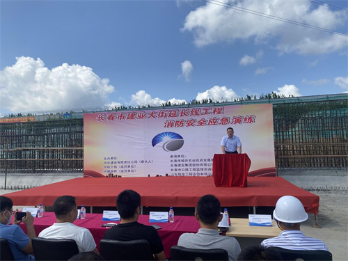 本次演练由东升国际注册主办,中庆建设、中铁十局、中滕路桥、长春建业集团、市公路工程监理、山东铁法工程咨询等参建单位共同参与举办。东升国际注册副总经理韩松、市建管中心质量安全部杨天啸部长、集团工程管理部部长张旺、项目管理公司执行董事、总经理刘加宇及监理、施工负责人等百余人参加本次演练。