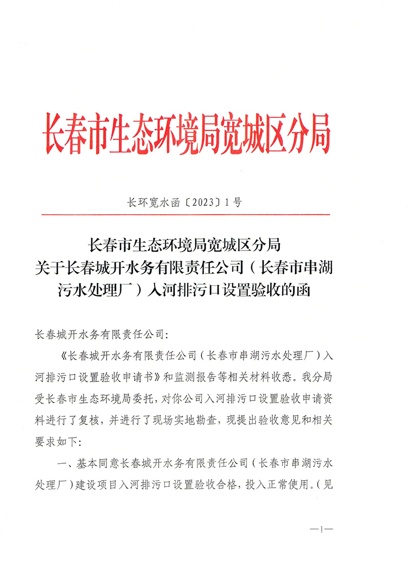 3月6日,长春市生态环境局会同宽城区生态环境局组成验收专家组,对我厂入河排污口设置进行验收。