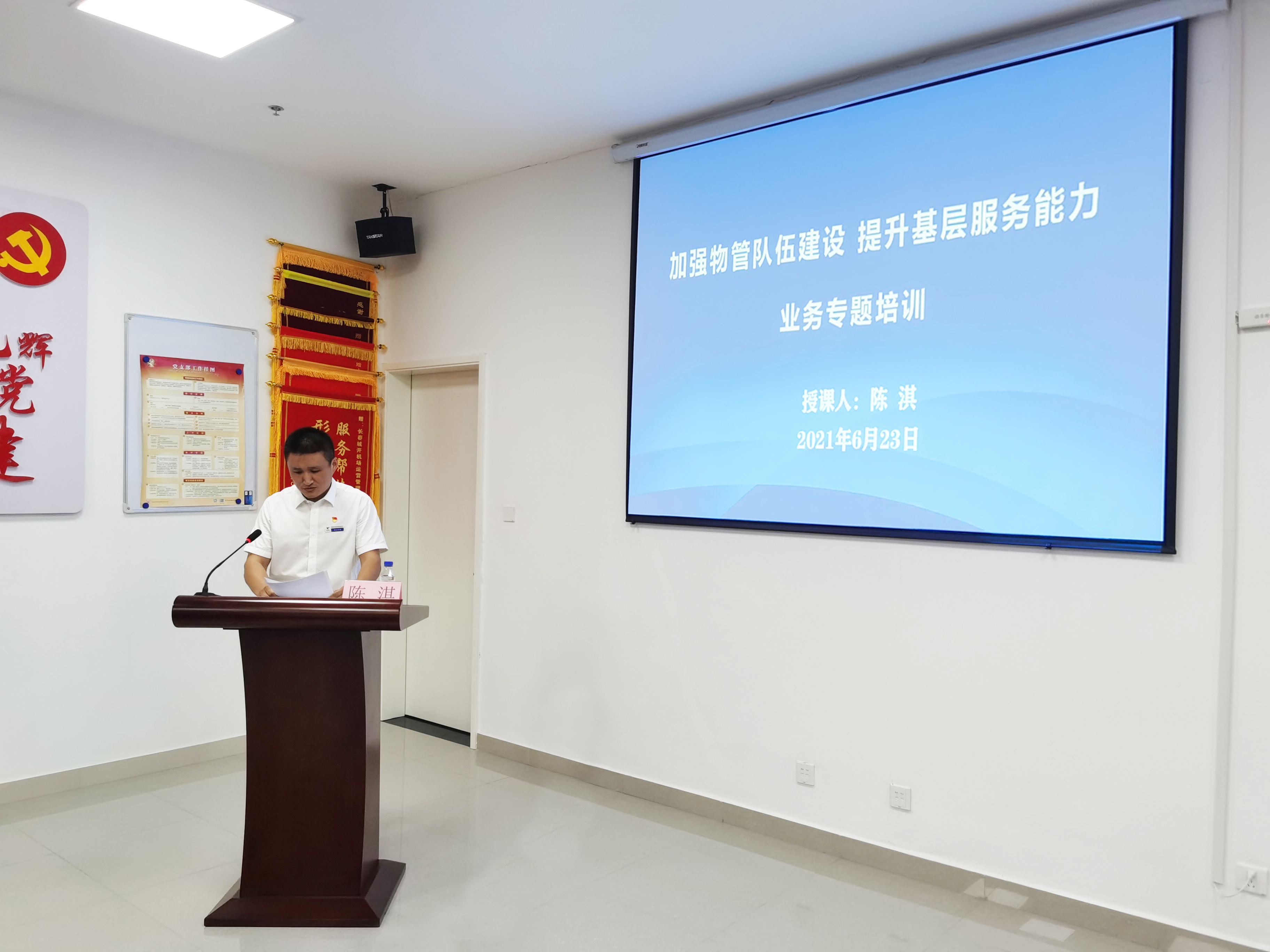 为加强物管队伍建设,提高物管队伍的整体管理水平,结合年初工作计划及党史学习教育开展的“我为群众办实事”活动要求,6月23日,长春城开机场运营管理有限公司副总经理陈淇同志开展2021年机场运营物业管理项目物管队伍班组长以上管理人员业务培训讲座。公司物业部全体员工、物管队伍班组长和服务台员工参加讲座。