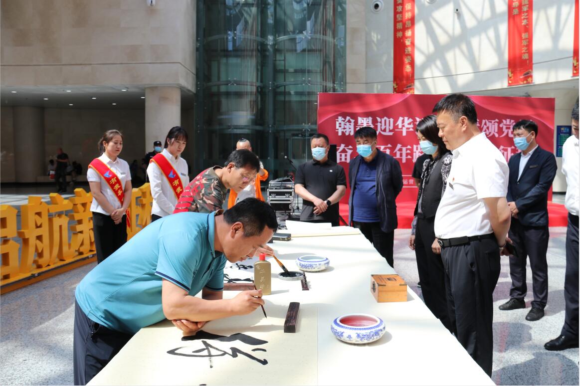 为庆祝中国共产党建党100周年,弘扬中华民族传统文化,运营公司全员在火车站换乘中心,开展了“翰墨迎华诞 丹青颂党恩 奋斗百年路 启航新征程”书画展活动。邀请了省、市知名书画家亲临现场指导。同时,集团副总经理宗国祥、韩松,总经理助理陆金荣出席了本次活动。