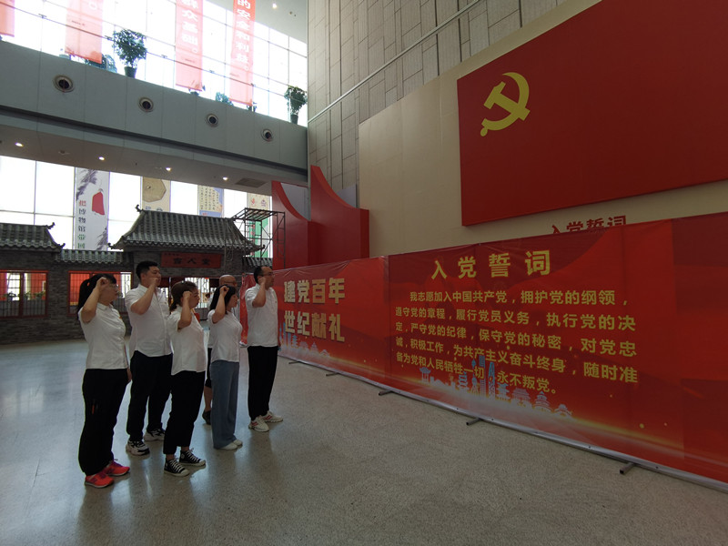在吉林省博物馆-吉林人民革命斗争史展馆,跟随前辈的事迹,找寻坚守初心和使命的坚定信念,支部全体党员及预备党员在党旗前庄严宣誓,向党许下毕生的承诺,坚定不移的跟党走,为党的事业奋斗终身。
