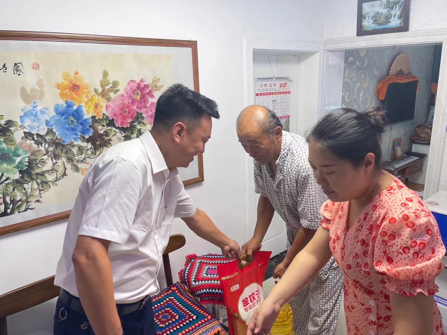 2021年7月16日上午,万家支部党员走访了属地社区三位老党员家庭,在这个具有纪念意义的红色七月为他们送去了慰问和生活必需品,将组织关怀在建党百年之际传递给这些在党百年奋斗历程中贡献力量的老党员。