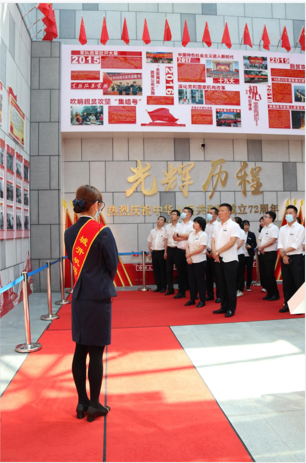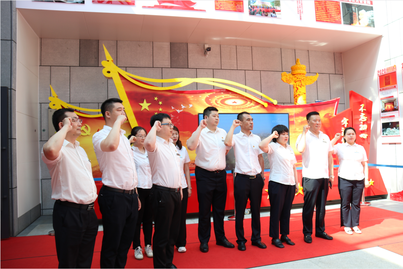 参观结束后,全体党员在庄严的党旗前重温入党誓词。面对镰刀和锤头,紧握拳头,立志自觉践行入党誓词,坚定政治信仰不变、政治立场不移、政治方向不偏,要用实际行动诠释一名党员的使命与担当。