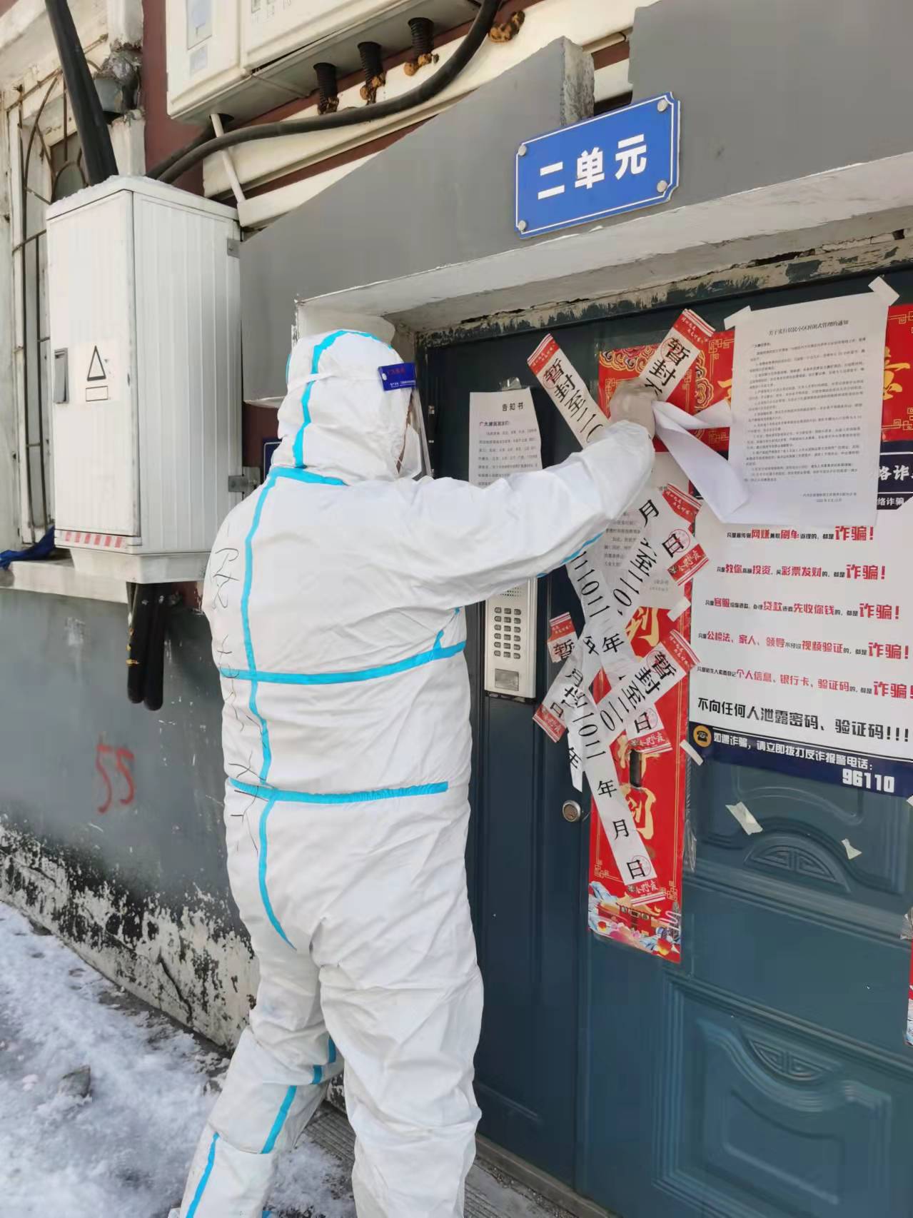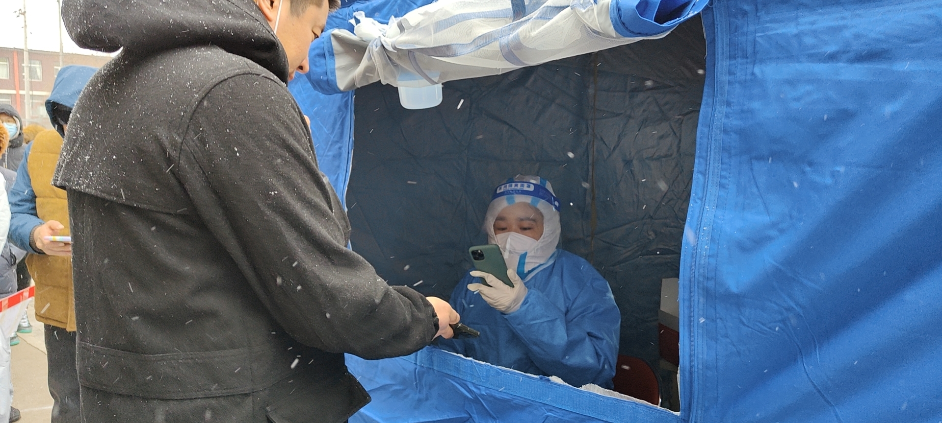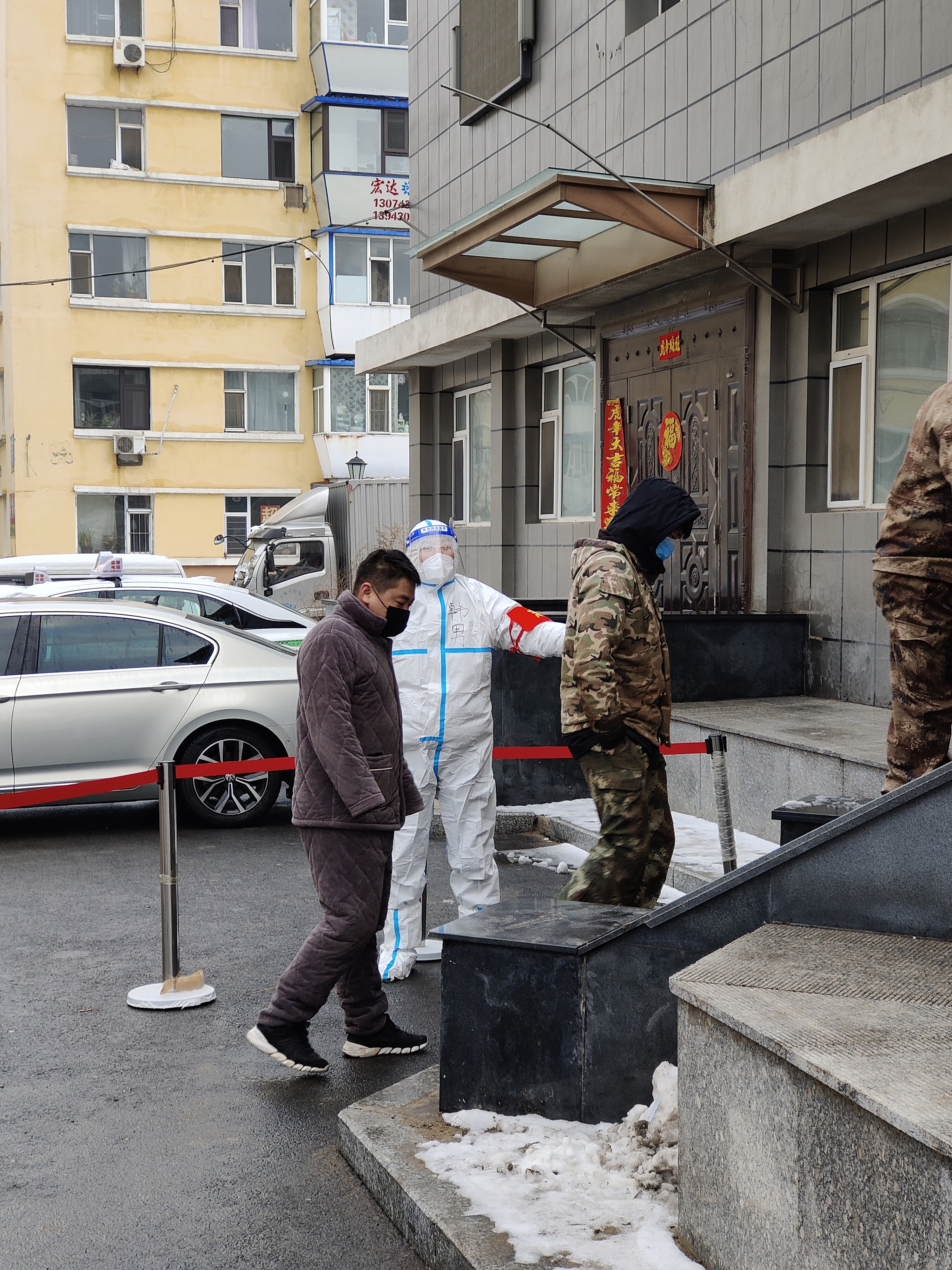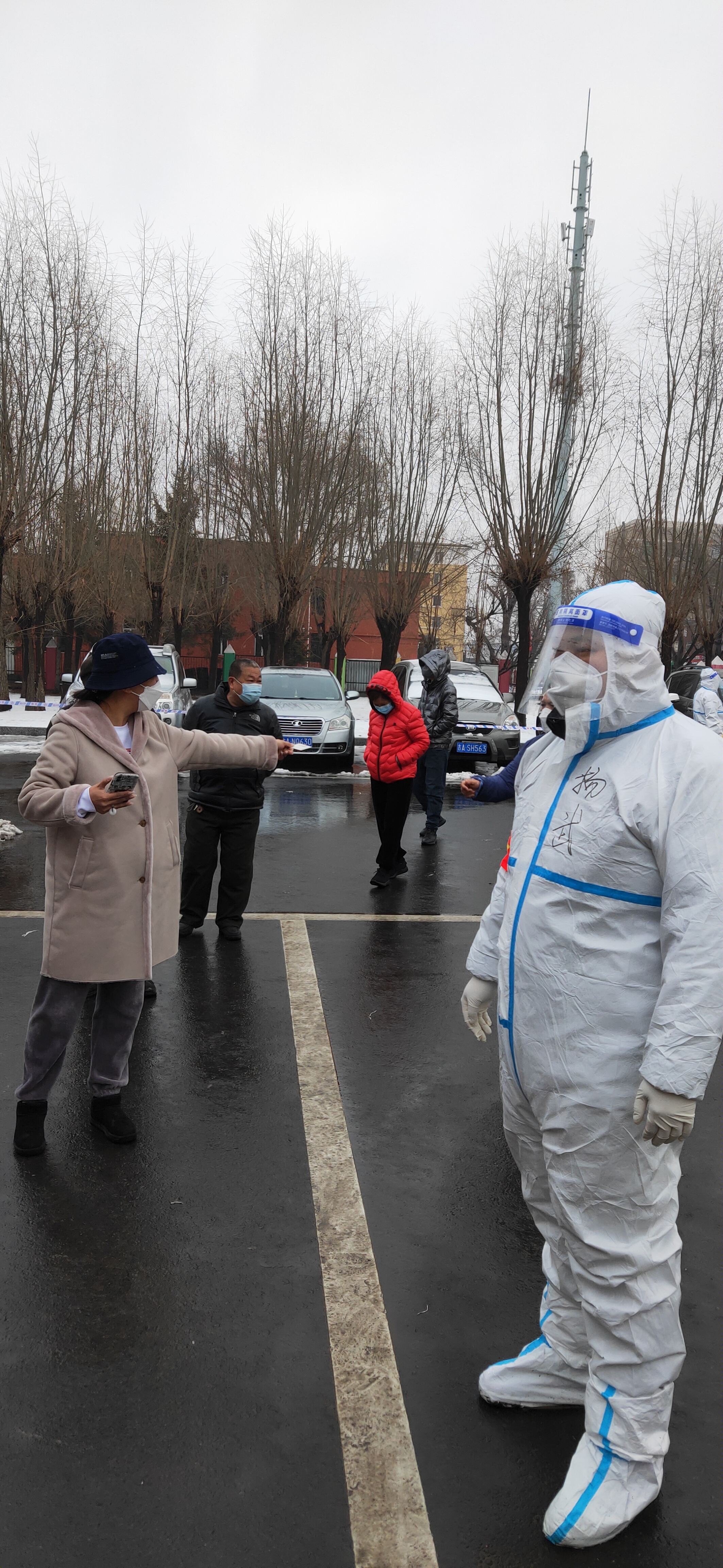 9王秋月——驱逐寒冬,守护春天。她负责护送年龄较大、行动不便的居民走绿色通道进行核酸检测,“已经数不清一天要爬多少级台阶,这几天腿都有些太不起来了,”她笑着说,“但我觉得这点辛苦不算什么,因为全民核酸检测一个都不能少。”