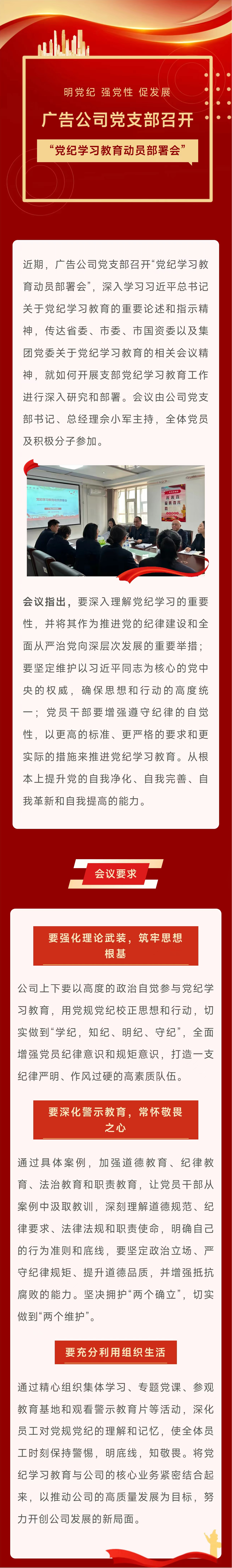 【党建·领航】明党纪 强党性 促发展——广告公司党支部召开“党纪学习教育动员部署会”