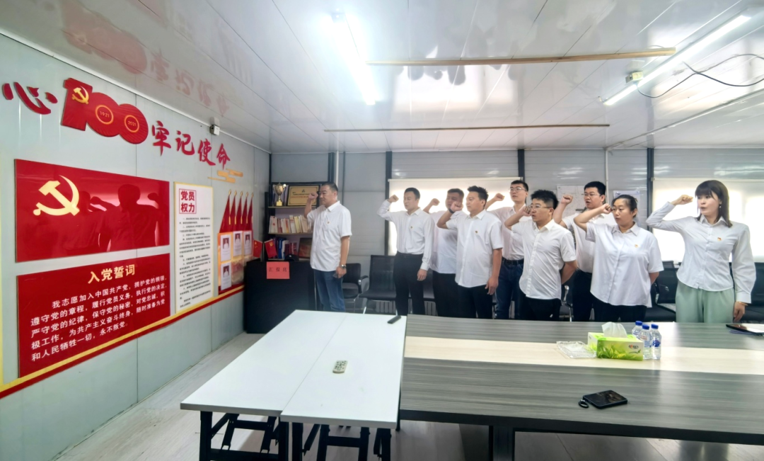 升旗仪式结束后,全体党员在党员活动室,面向党旗重温入党誓词。宣誓党员们用誓词彰显永恒初心,增强党员意识,永葆党员本色。党员干部纷纷表示,将在各自的岗位上充分发挥模范带头作用,为公司项目持续高标准推进提供坚强保障,为万家公司党支部又好又快完成年度重点工作任务汲取磅礴之力。